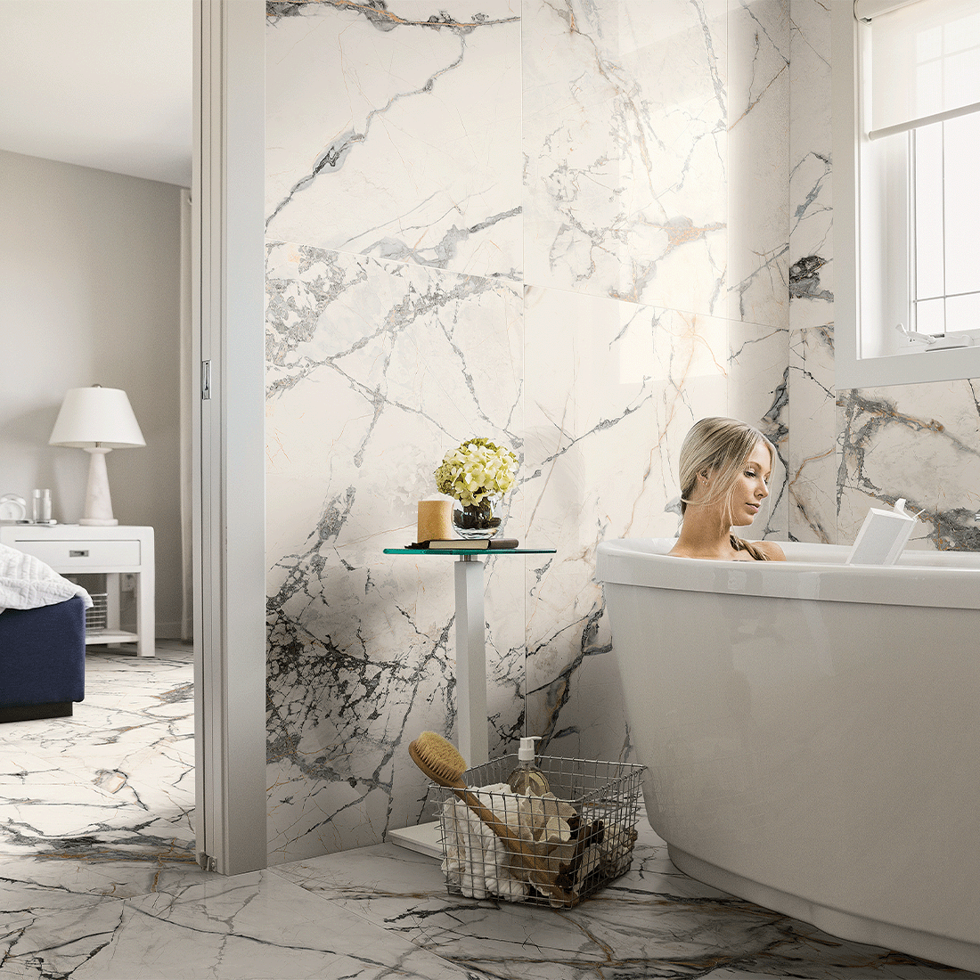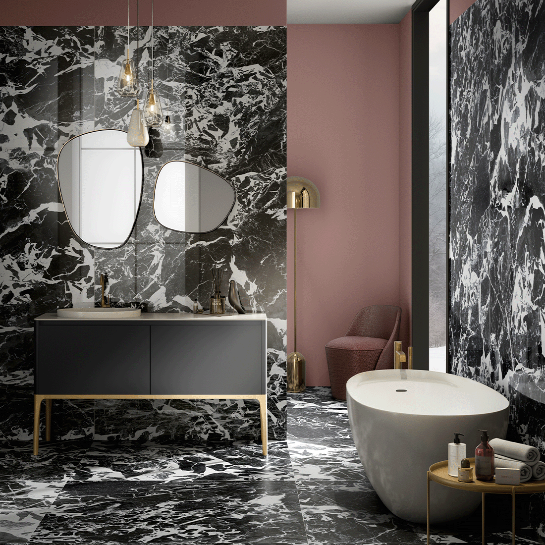 The Jurassic range is one of our largest and most comprehensive ranges of exotic marble-effect tiles. It is available in various formats and finishes and such is its popularity that we keep some of each colour in stock in our Chiswick warehouse for speedy delivery. Call us to check the lead time on your chosen tile. This range can be used anywhere in your home, apart from Jurassic Leopard, which can only be used on walls. Prices start from £65.00 per square metre.